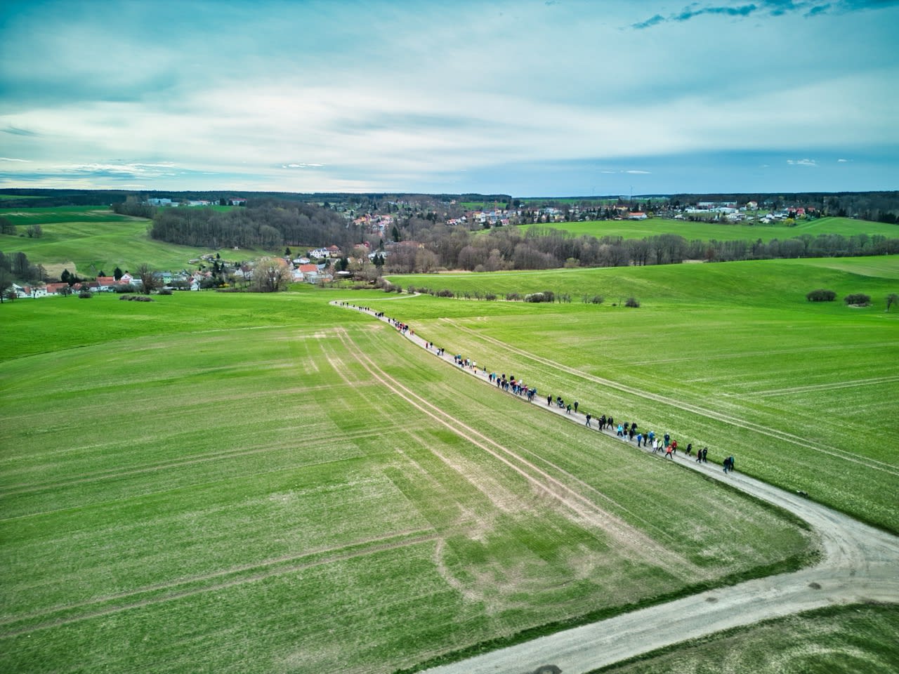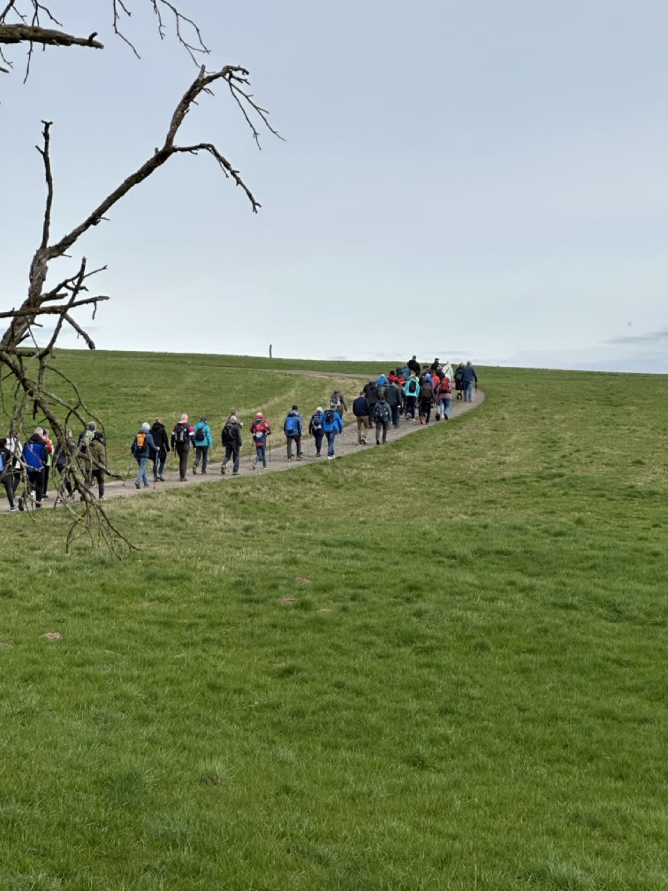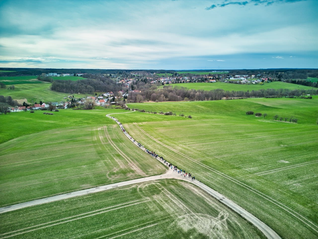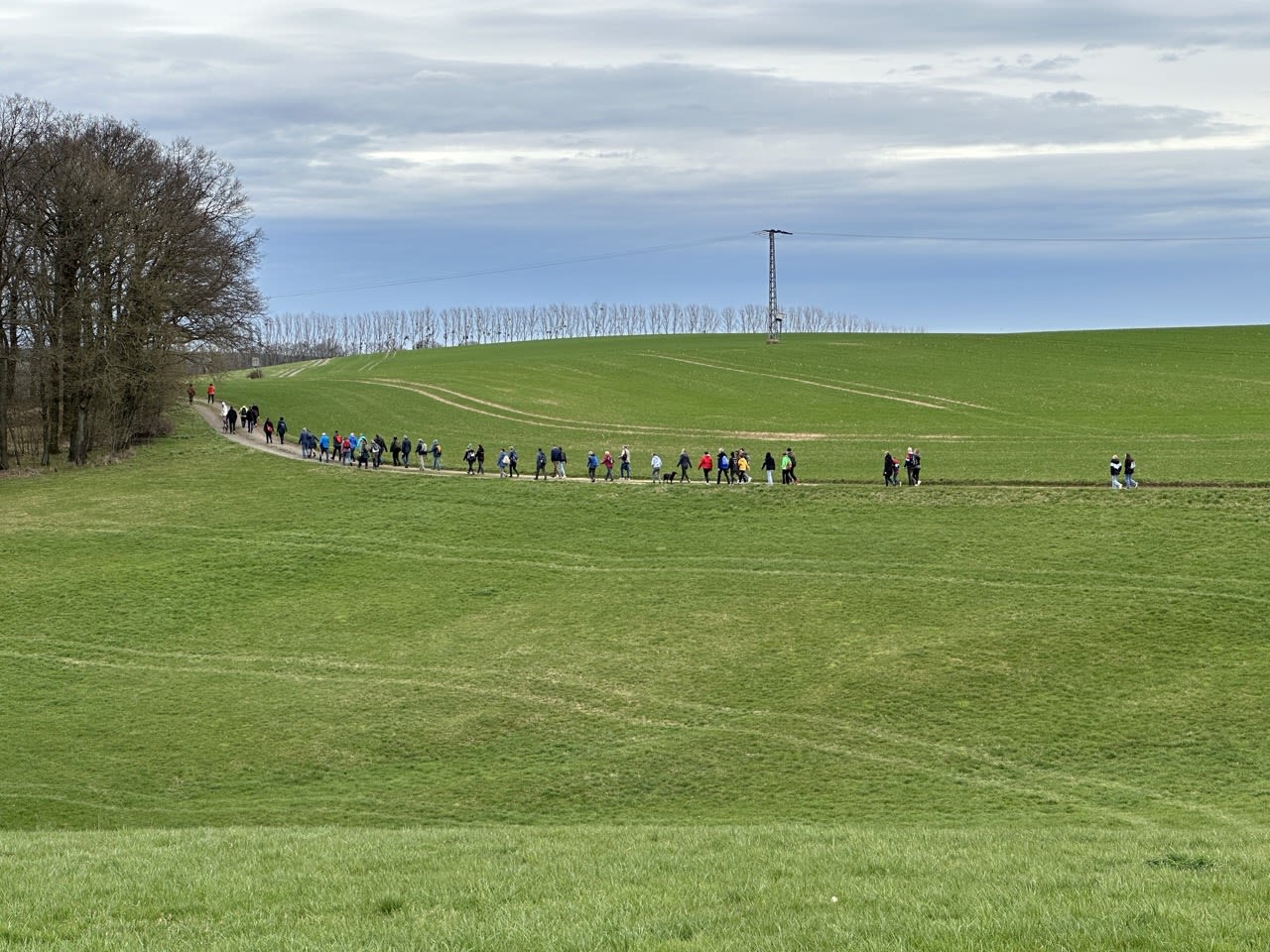 Dann setzte sich der Wanderzug in Richtung Kleinbernsdorf in Bewegung. Bei einer kurzen Zwischenzählung wurden 101 wandernde Teilnehmer gezählt. Über Feldwege ging es in Richtung Lindenkreuz, bevor in das Wintertal abgebogen wurde, kurz entlang des Wintertalbaches. Anschließend ging es nach Schöna weiter.