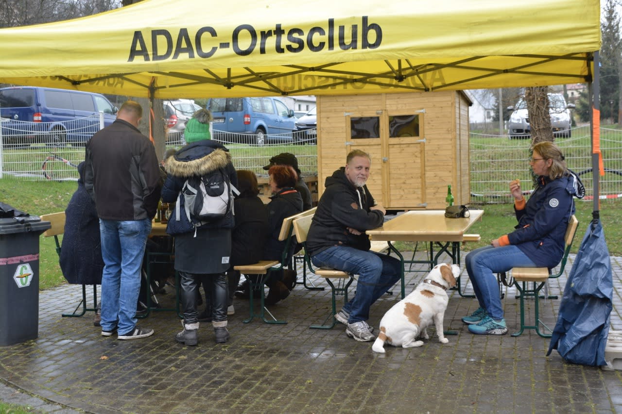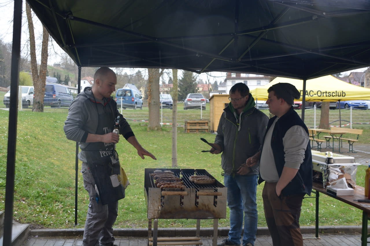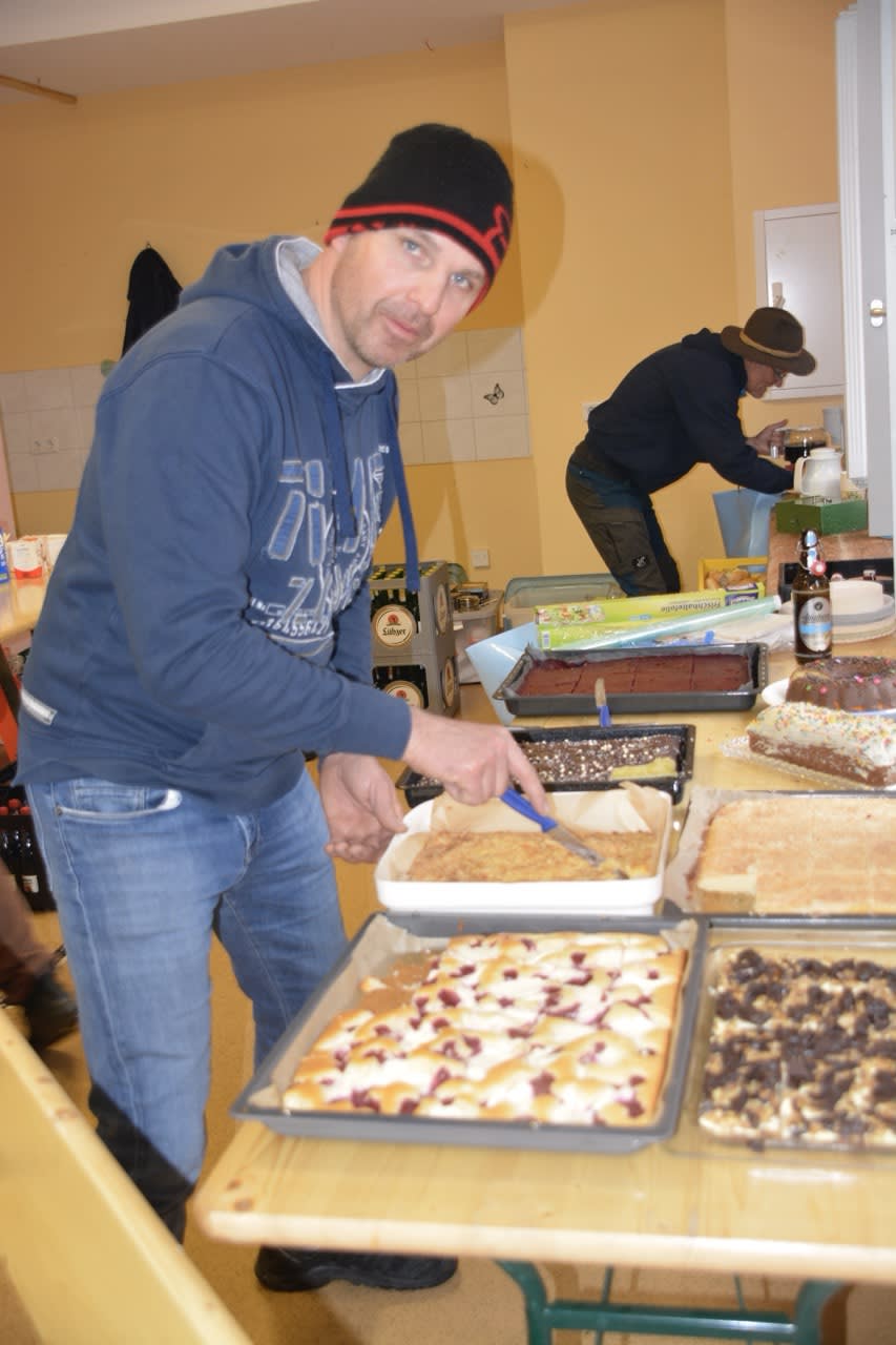 Als die Gruppe schließlich das Kulturhaus erreichte, wurden sie von einem Angebot an Kuchen, Rostern und warmen sowie kalten Getränken erwartet, bereitgestellt von den fleißigen Helfern des Motorsport Clubs. Die ehemaligen Räumlichkeiten des Jugendclubs wurden kurzerhand mit Bierzeltgarnituren ausgestattet, sodass die Teilnehmer trotz des Regens gemütlich beisammen saßen. Ein Beweis für die Flexibilität und Gastfreundschaft des Vereins, der stets bemüht ist, seinen Mitgliedern und Gästen das Beste zu bieten.